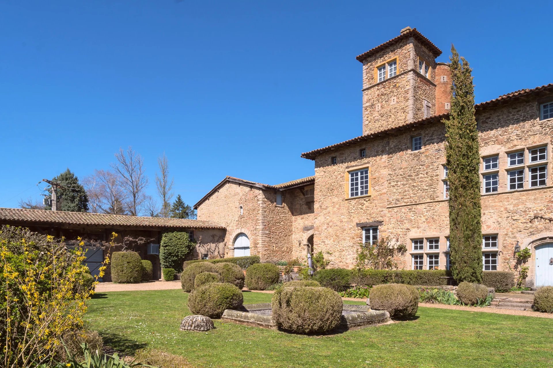 EXCLUSIVITÉ - Limonest – Dans un environnement calme et préservé, cette magnifique propriété en pierres datant du XIVe siècle a été repensée au début du XXe dans un style inspiré de la Renaissance italienne, notamment par la création d’ouvertures qui ajoutent élégance et lumière.