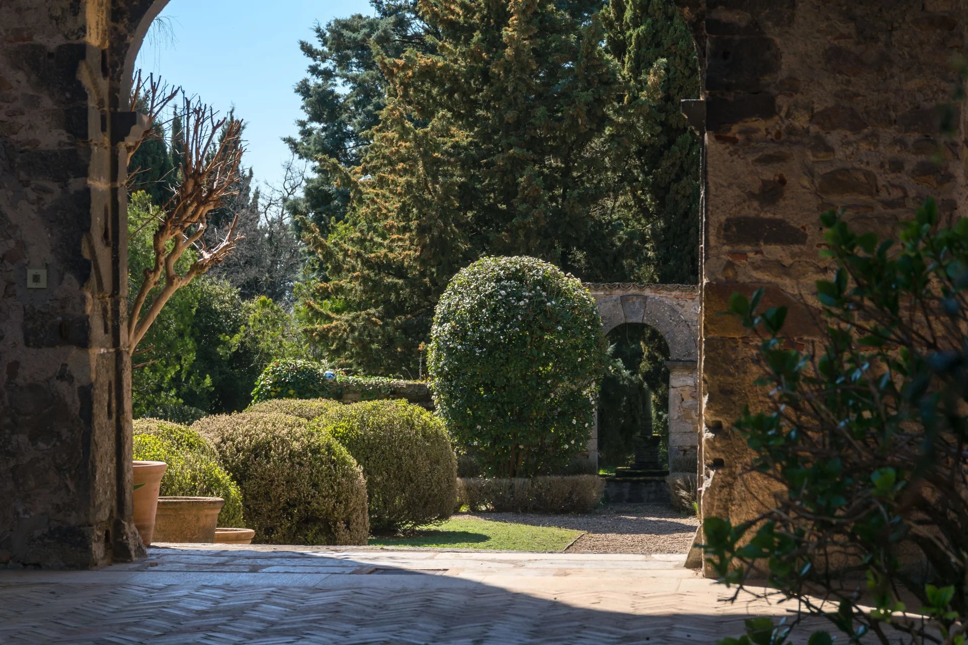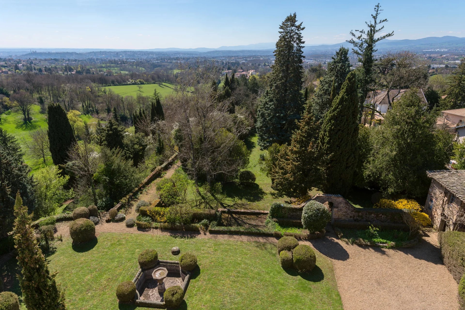 Le parc arboré de 7 660 m2 comprend une grande partie en espaliers évoquant la Toscane par sa disposition et le choix des essences.