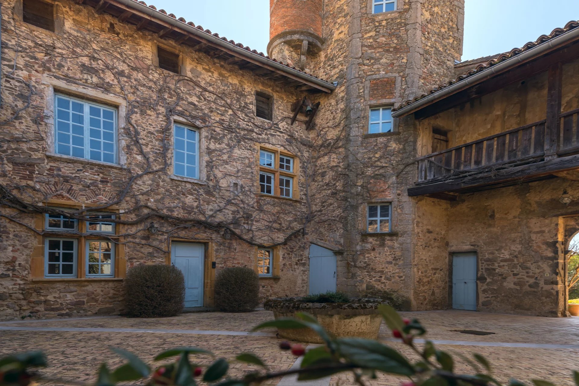 Une tour avec son escalier à vis dessert de nombreuses pièces qui peuvent être aménagées. Elle vous offrira une vue exceptionnelle jusqu'à la basilique de Fourvière.