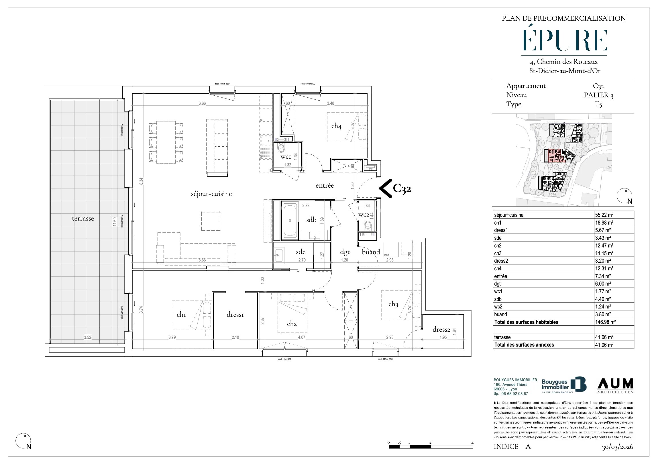 Saint Didier au Mont d'Or - Appartement familial de 146,98 m² - 4 chambres - Terrasse de 41 m² - Garage double en sous-sol