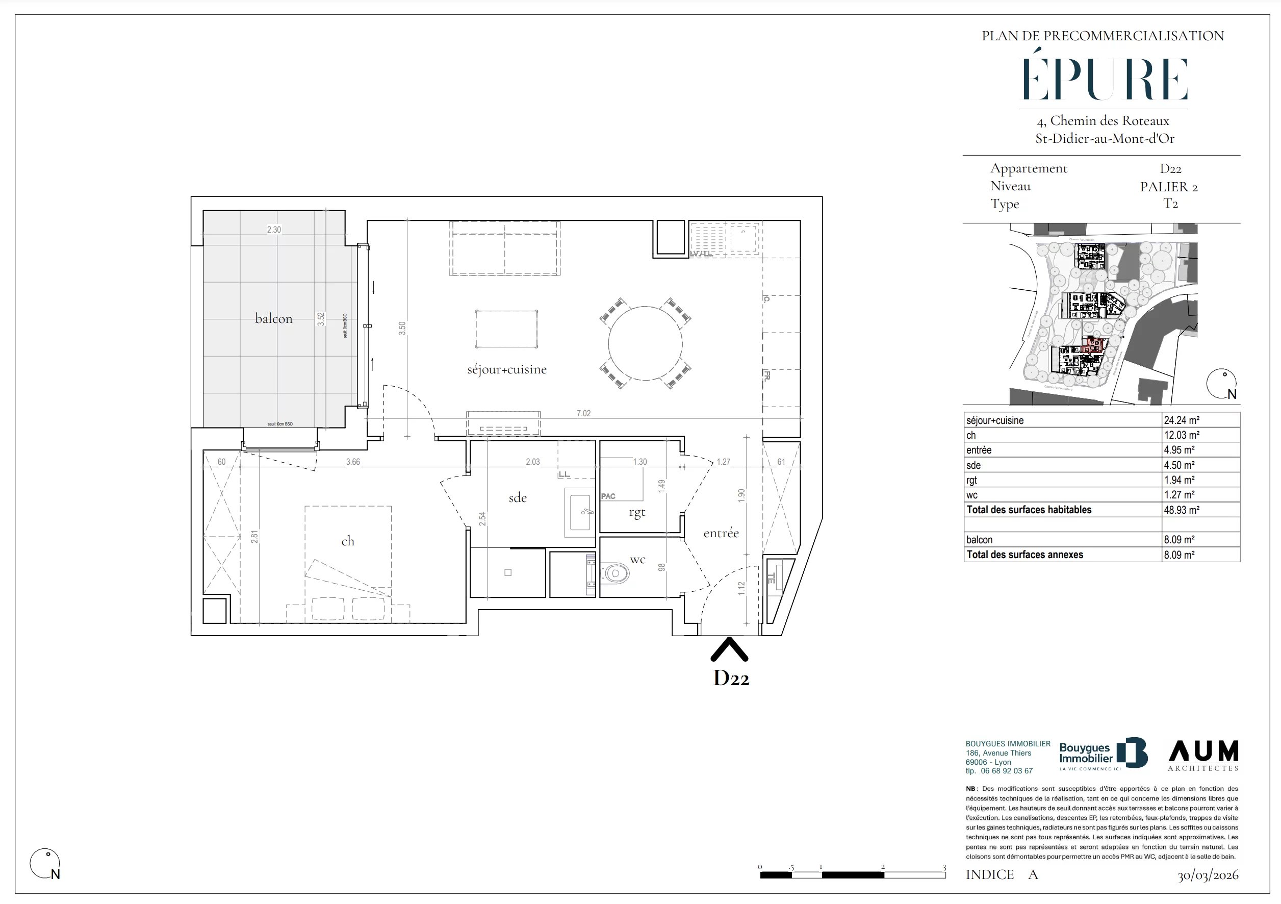 Saint Didier au Mont d'Or - Appartement de 48,93 m² - 1 chambre - Balcon de 8,09 m² - Garage en sous-sol